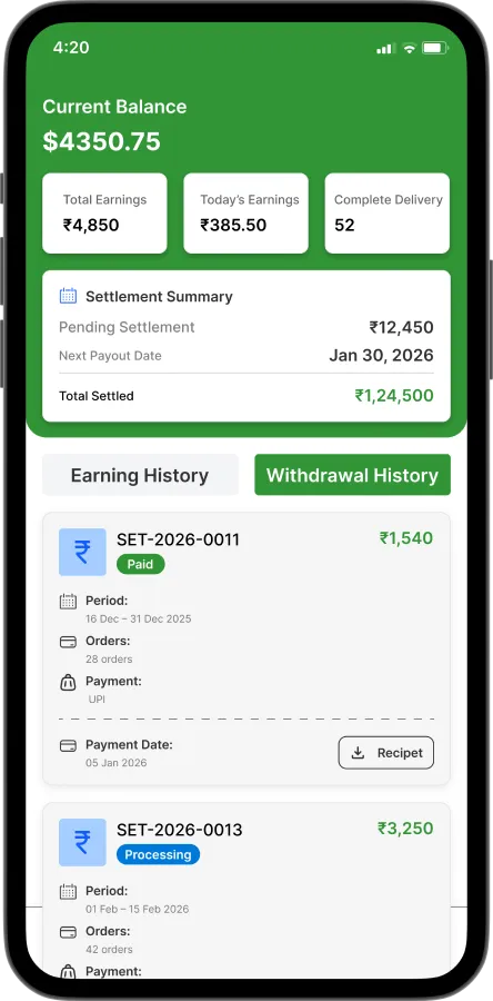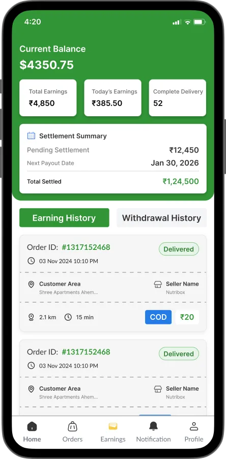 Smart location-based order allocation with real-time delivery tracking and zone-wise operations.
