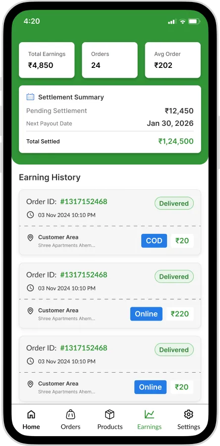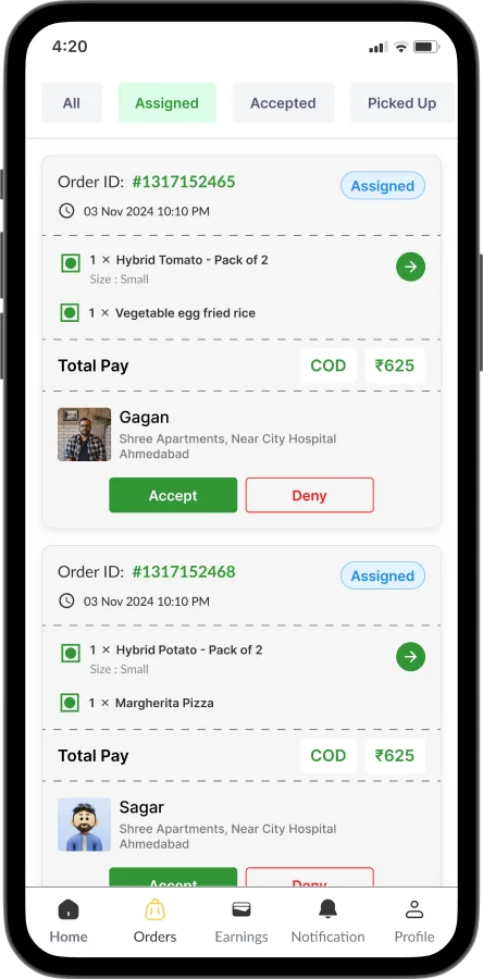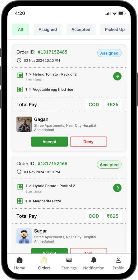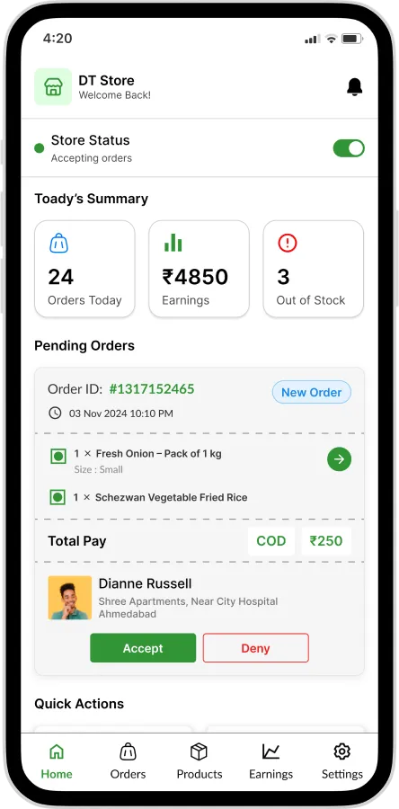 Manage delivery partners, assign orders, and track deliveries efficiently through the admin panel.