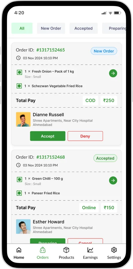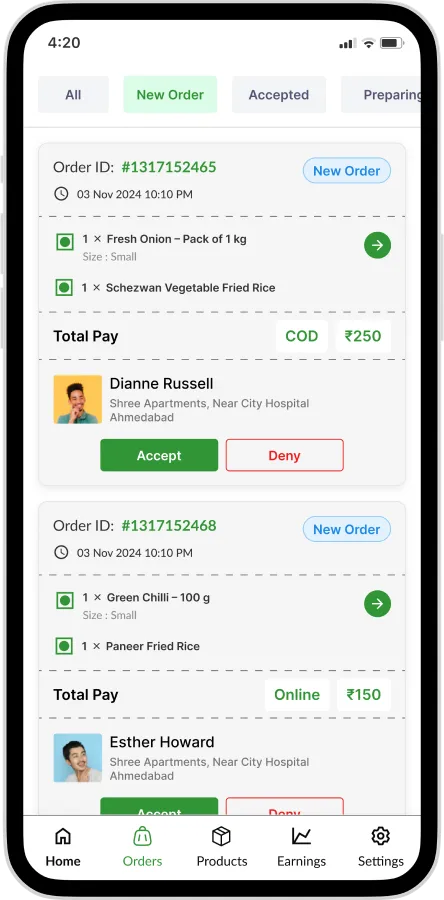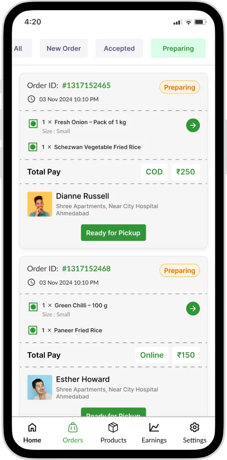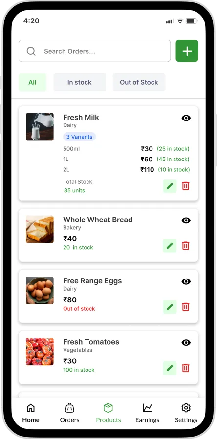 Deliver groceries, fruits, vegetables, medicines and daily essentials to customers within minutes.