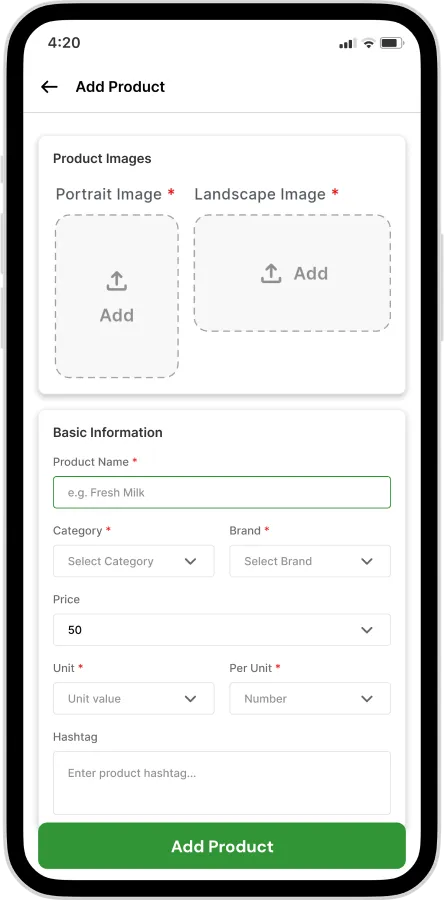 Admin can manage unlimited categories, products, variants, pricing, and stock levels from the admin panel.