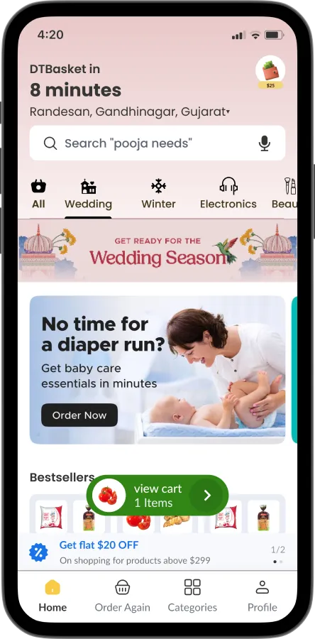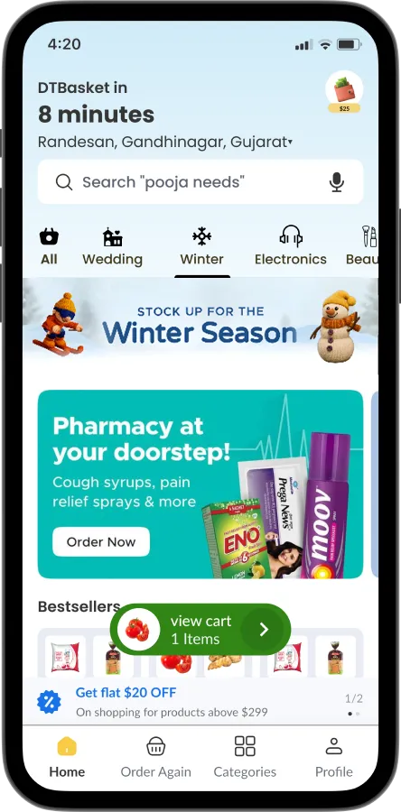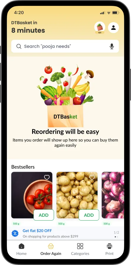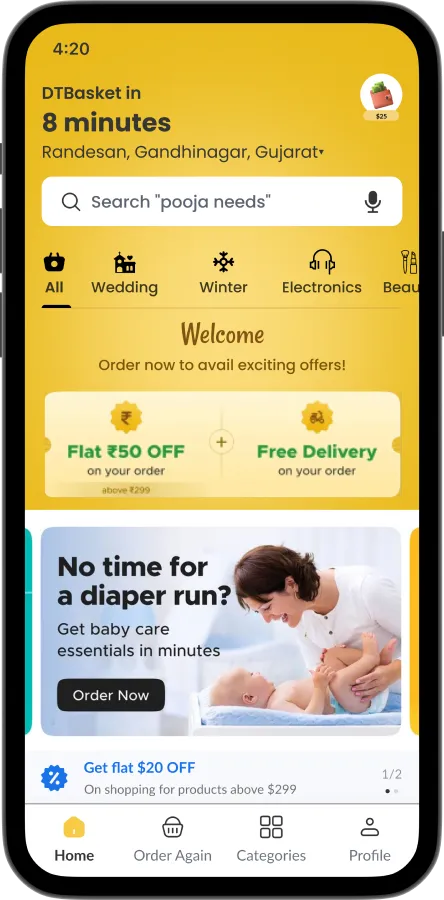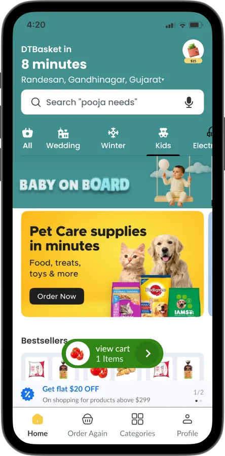 Deliver groceries, fruits, vegetables, medicines & daily essentials in minutes. DTBasket is a Blinkit-like hyperlocal delivery platform with fast checkout, real-time tracking, and powerful admin control to scale your business effortlessly.